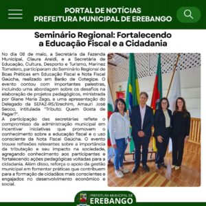 A Prefeitura de Erebango informa à população que, no dia 21 de maio, ocorreu a IX Conferência Municipal de Saúde, realizada no Centro Multiuso. O evento contou