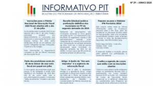 A nova edição do Boletim Informativo PIT está disponível para download no site da Receita Estadual e no site de Educação Fiscal. https://receita.fazenda.rs.gov.br/conteudo/20892/informativo-pit-n%c2%ba-29—junho-2025