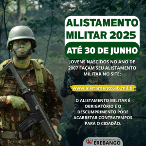 A Prefeitura Municipal de Erebango comunica aos jovens do município que o período de alistamento militar obrigatório para o ano de 2025 já está em