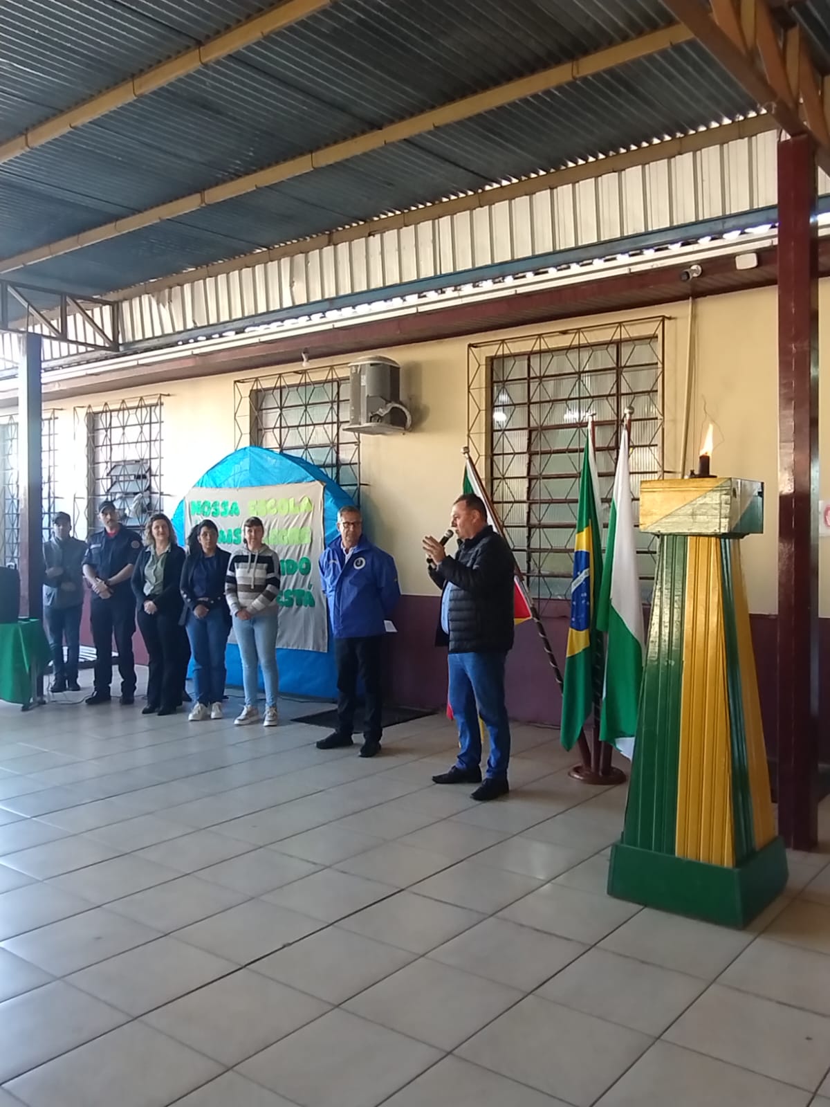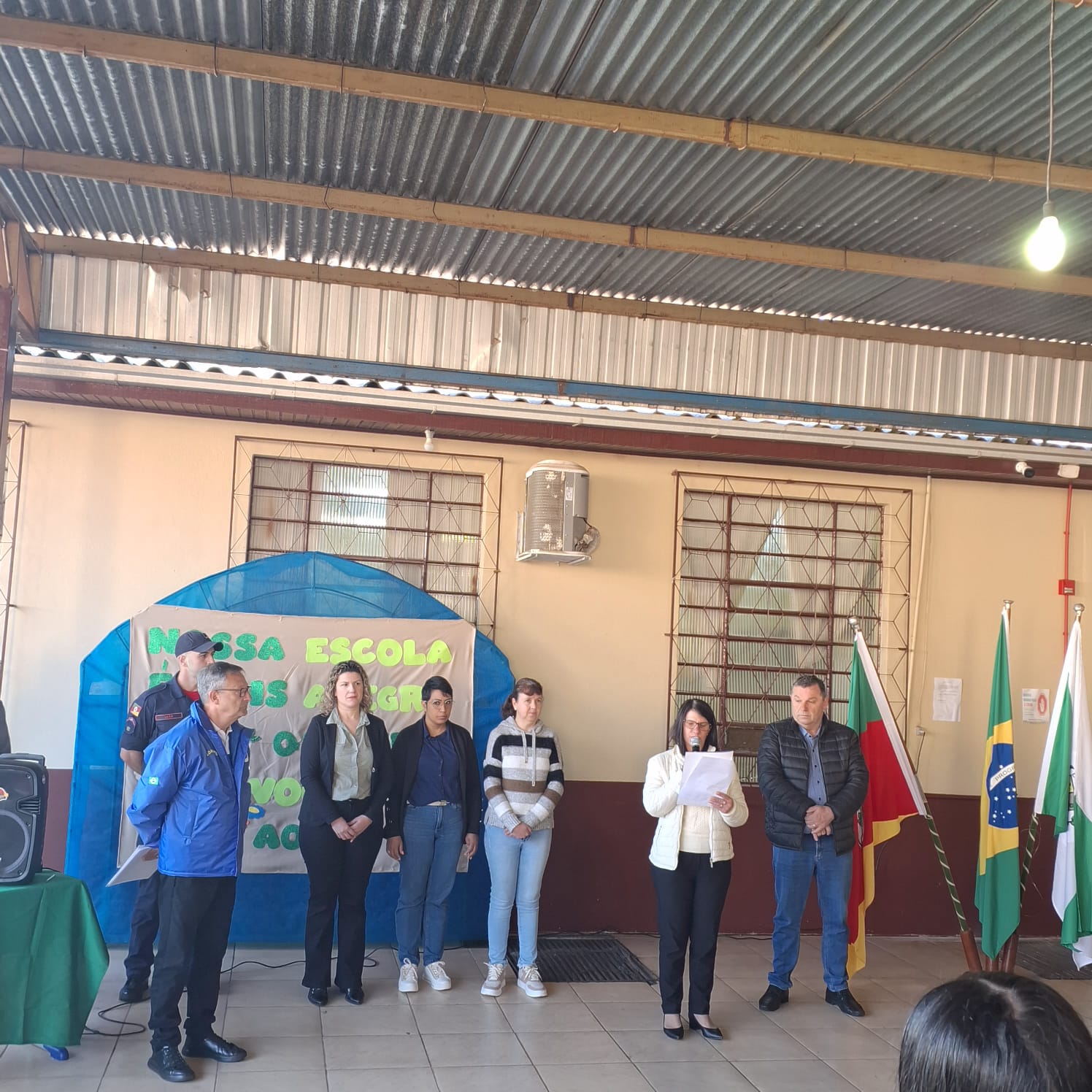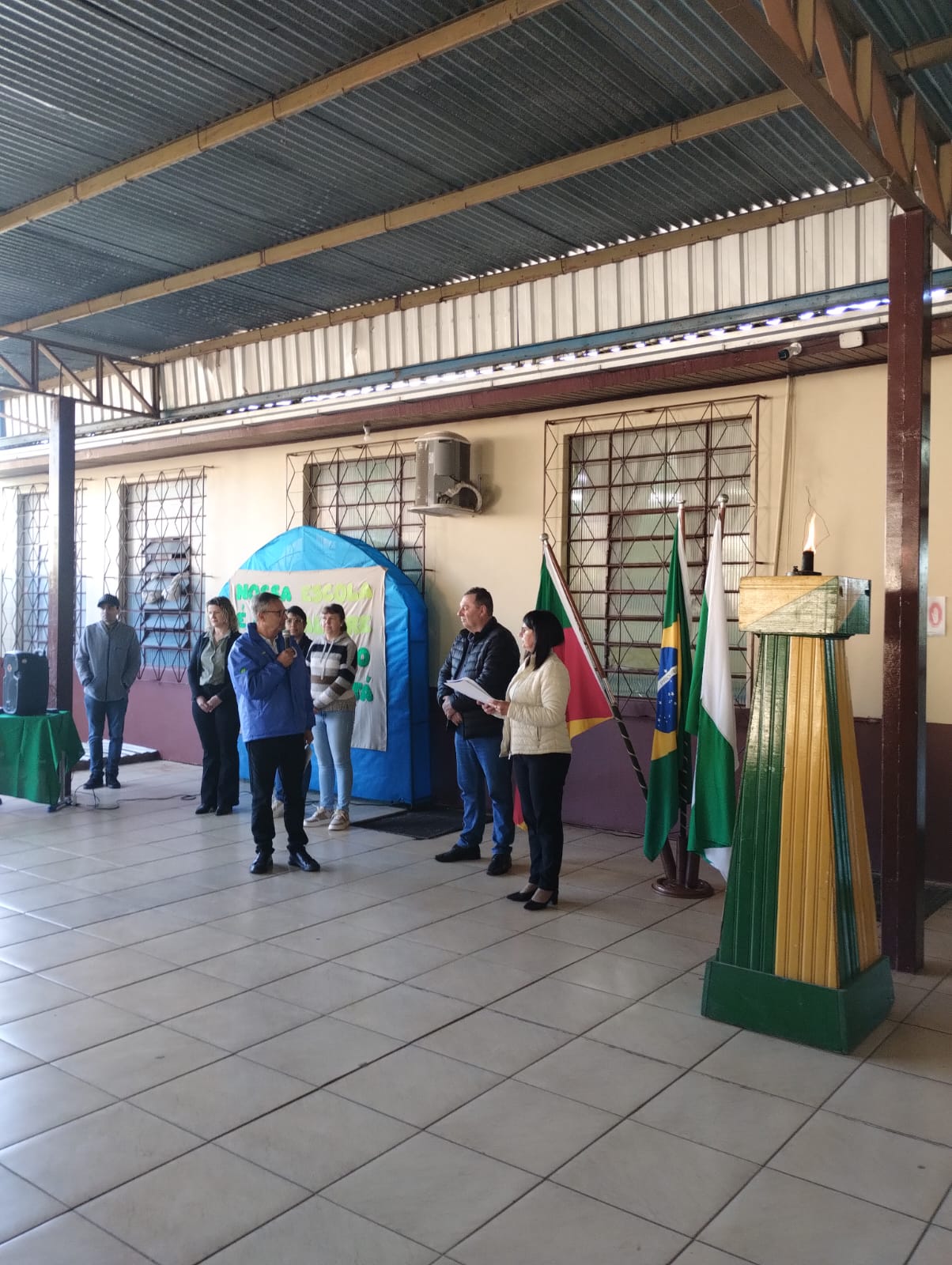 Estiveram presentes o Prefeito Valmor José Tomelero, a Secretária de Educação, Cultura, Desporto e Turismo Marinez Tomelero, além das direções do Colégio Estadual Irineu Evangelista de Souza e da Escola Municipal de Educação Infantil Vó Alma, professores, funcionários e alunos demonstrando o envolvimento das instituições locais com a formação cidadã.