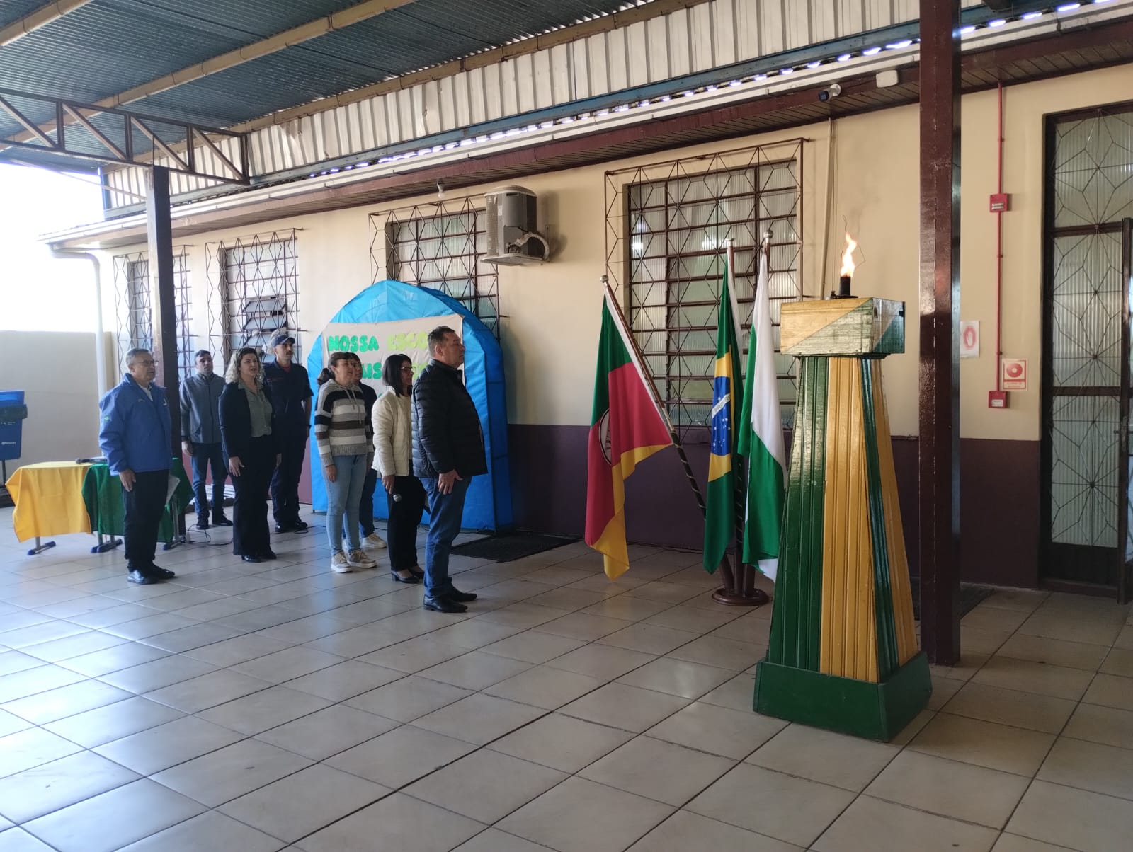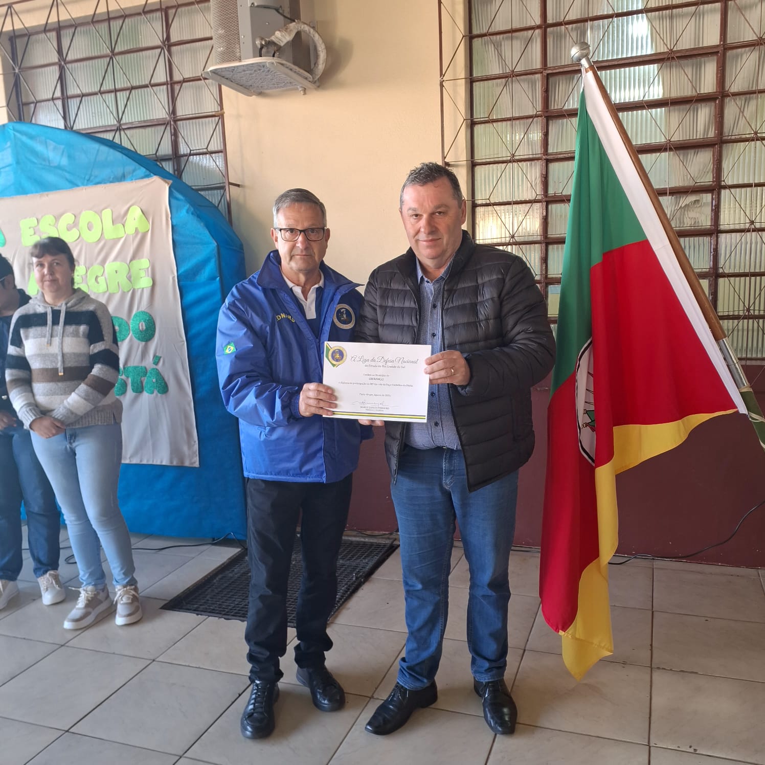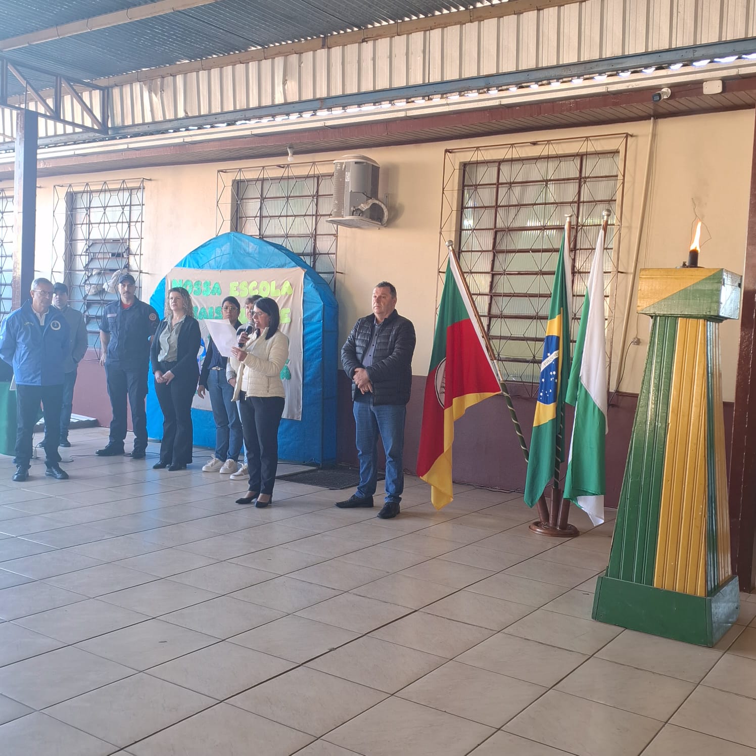 Estiveram presentes o Prefeito Valmor José Tomelero, a Secretária de Educação, Cultura, Desporto e Turismo Marinez Tomelero, além das direções do Colégio Estadual Irineu Evangelista de Souza e da Escola Municipal de Educação Infantil Vó Alma, professores, funcionários e alunos demonstrando o envolvimento das instituições locais com a formação cidadã.