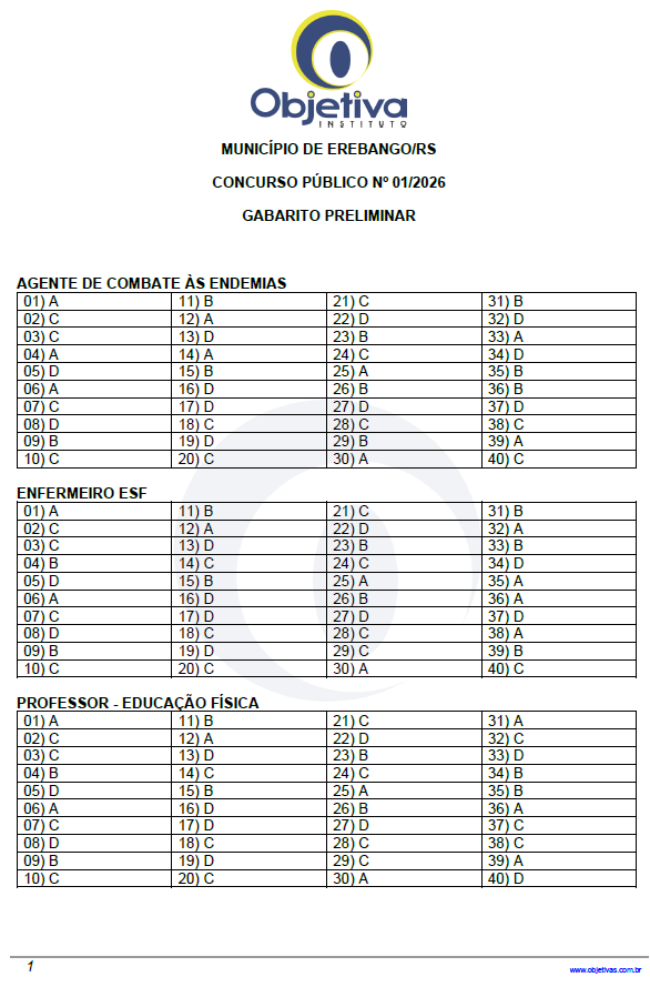 CONCURSO 01/2026 – GABARITO PRELIMINAR
