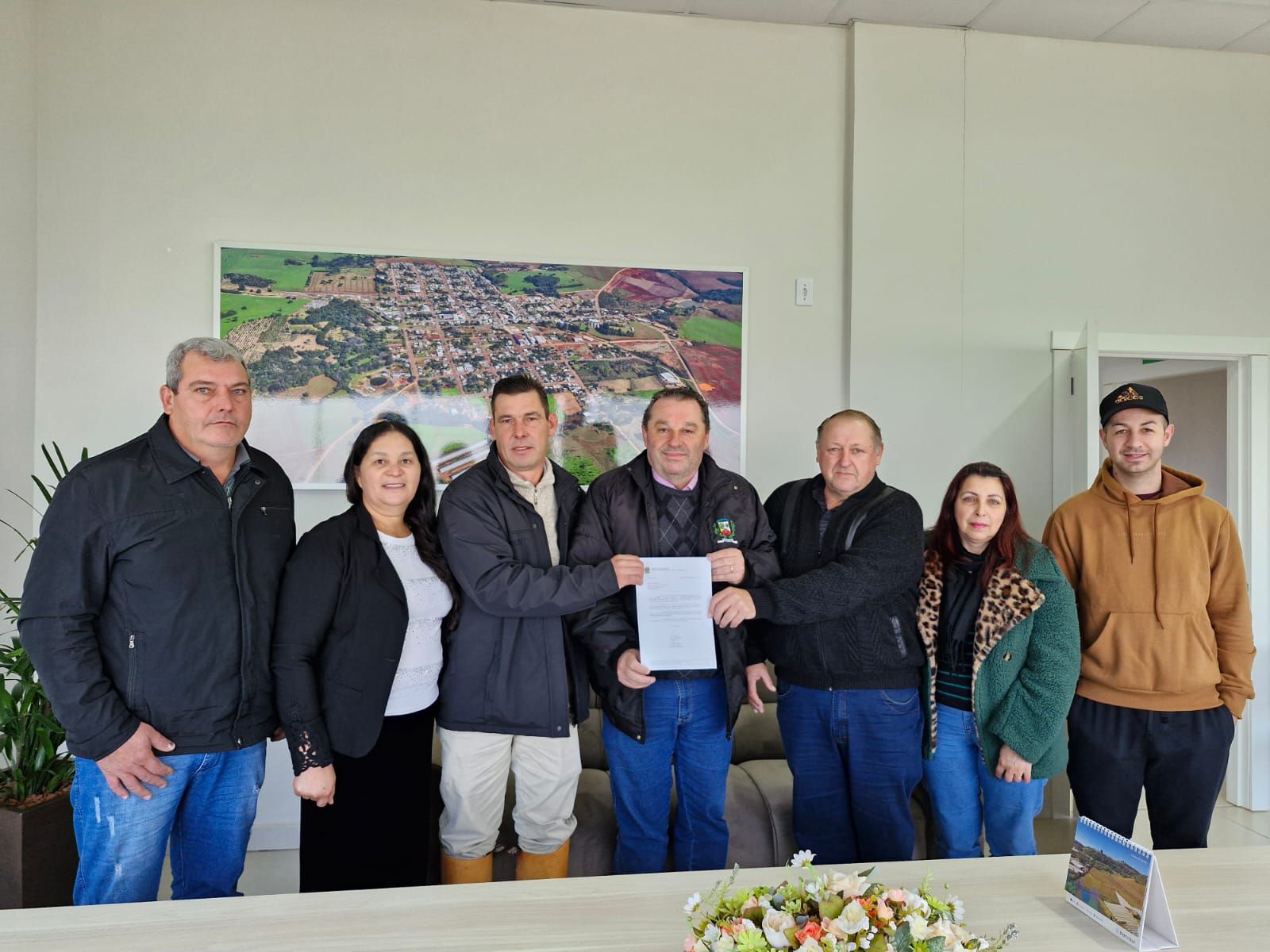O vereador Nestor Euzébio Kusz, o secretário municipal de Agricultura Flávio Kusz, o presidente do Partido Republicanos de Erebango, Altemir Deconto, e demais membros do partido reuniram-se com o prefeito Valmor José Tomelero para oficializar a entrega de uma Emenda Parlamentar no valor de R$250.000,00 (duzentos e cinquenta mil reais). O recurso foi destinado pelo Deputado Federal Carlos Gomes e será utilizado na aquisição de máquinas para fortalecer a patrulha agrícola do município.